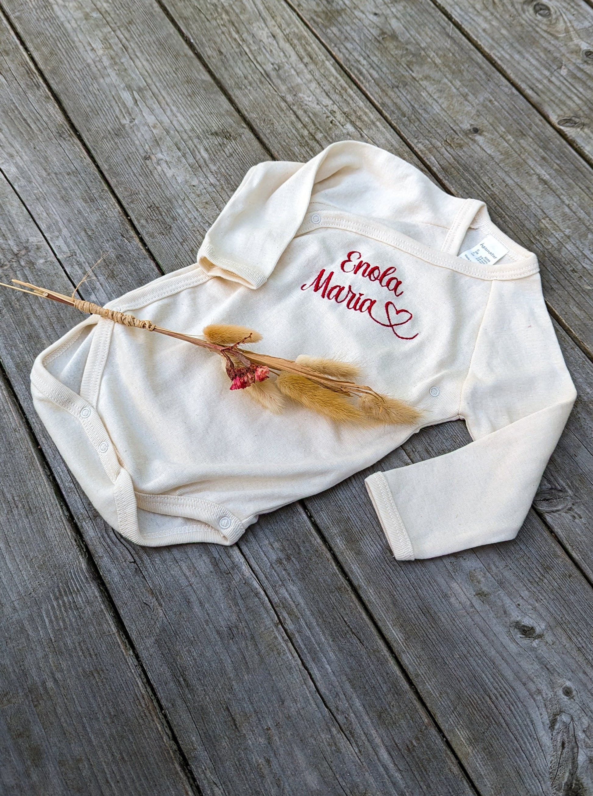 Personalisierter Babybody aus 100 % Bio-Baumwolle – Bestickt mit Namen
